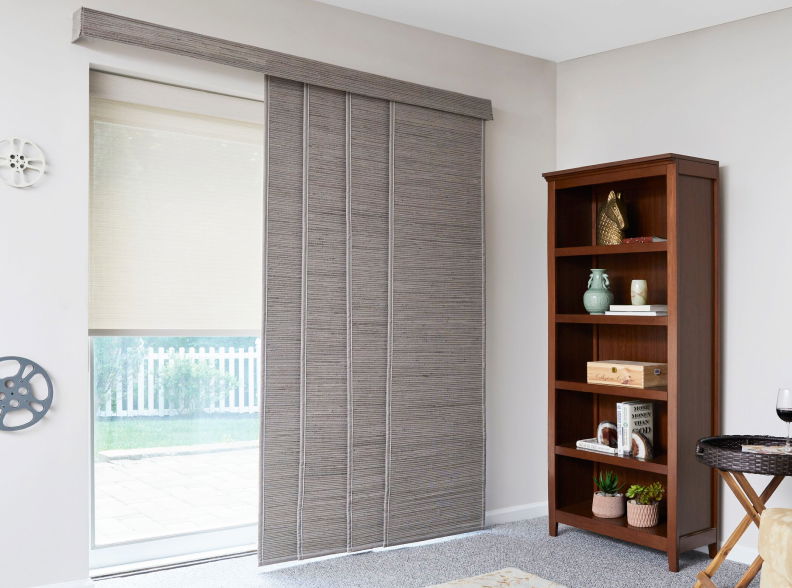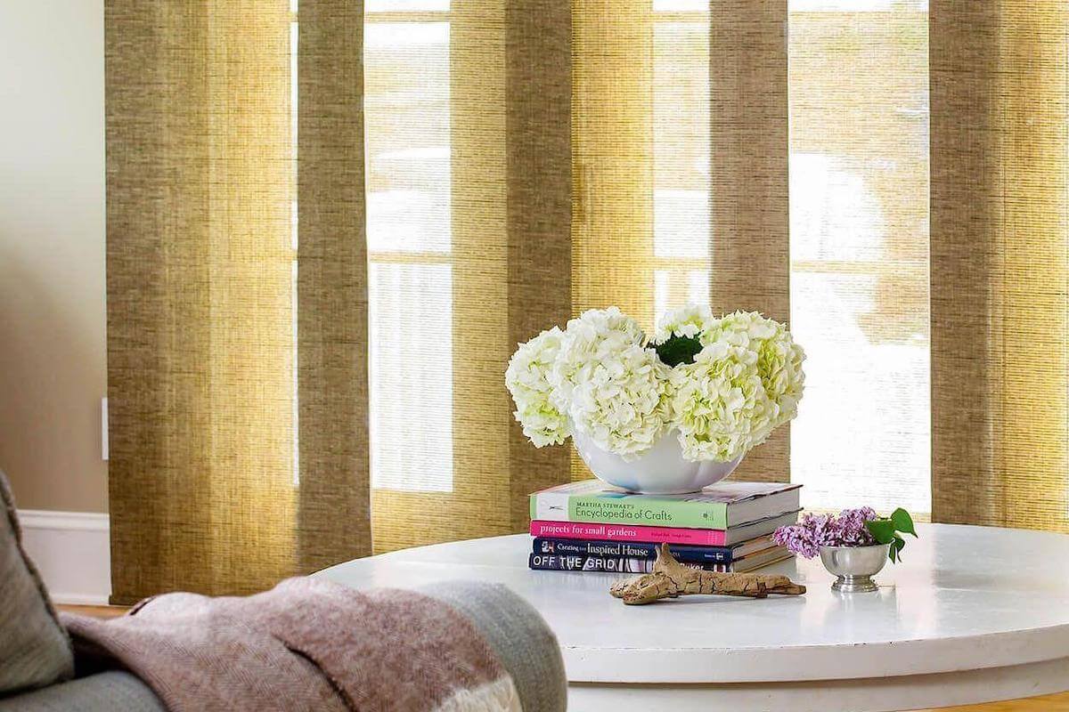You can also order panel track blinds online and customize the stack, panel width, and top treatment. Chat support can guide fabric and control choices.